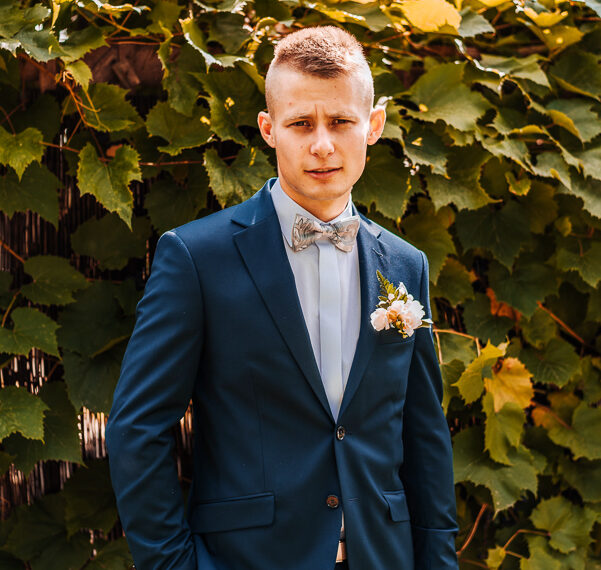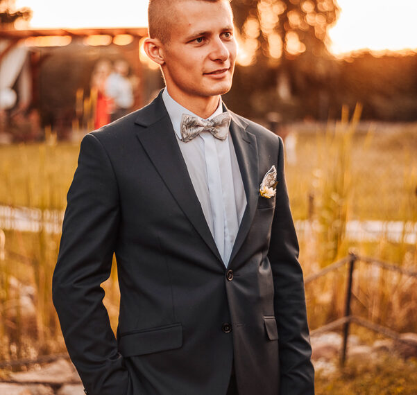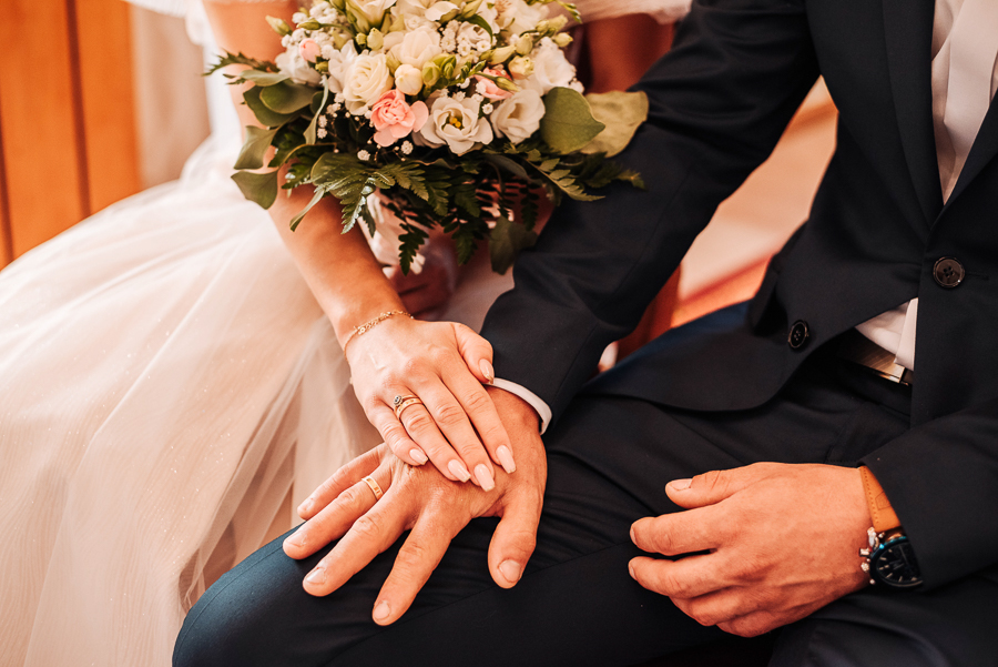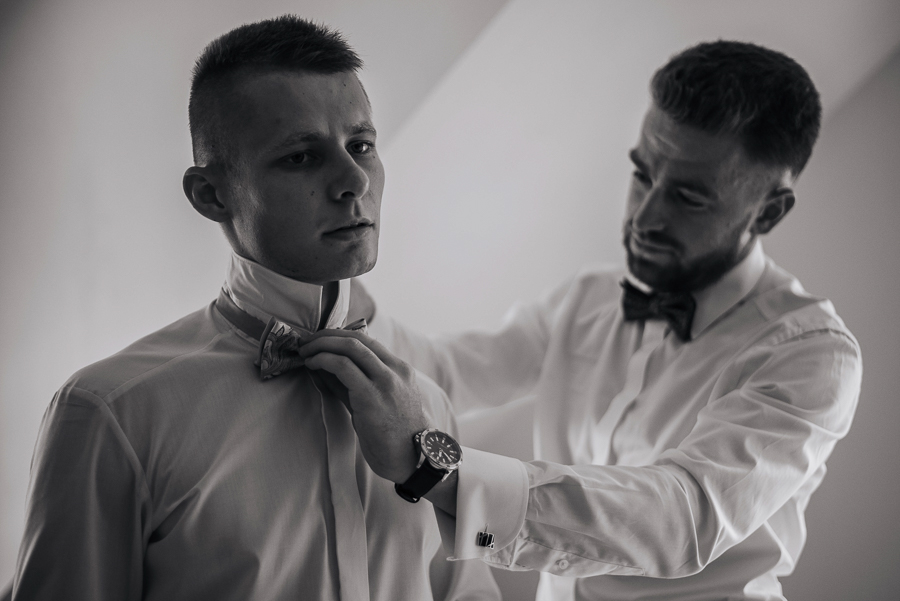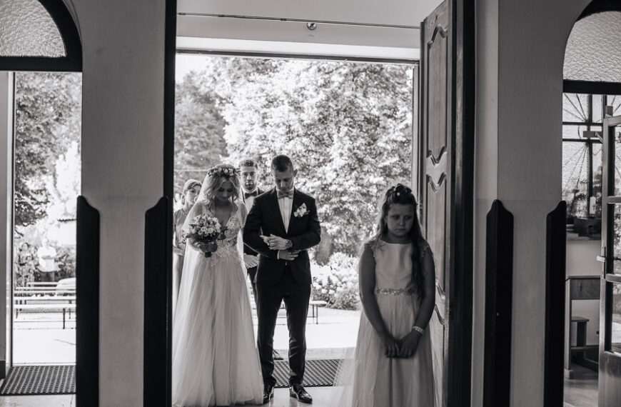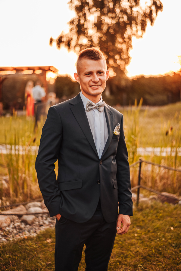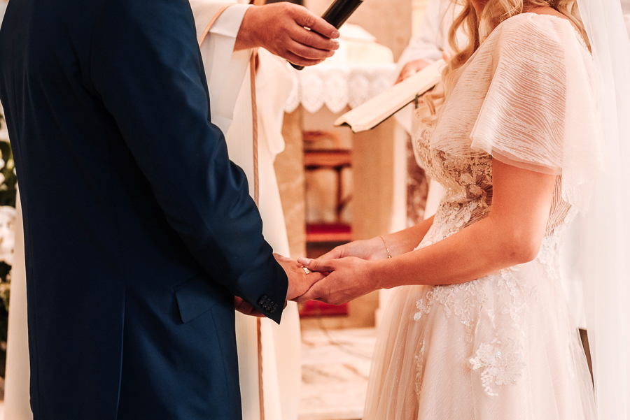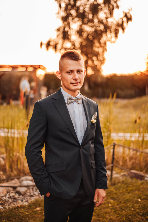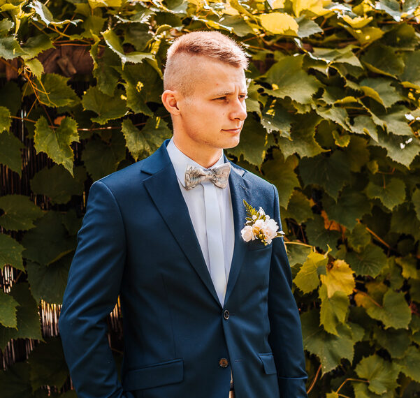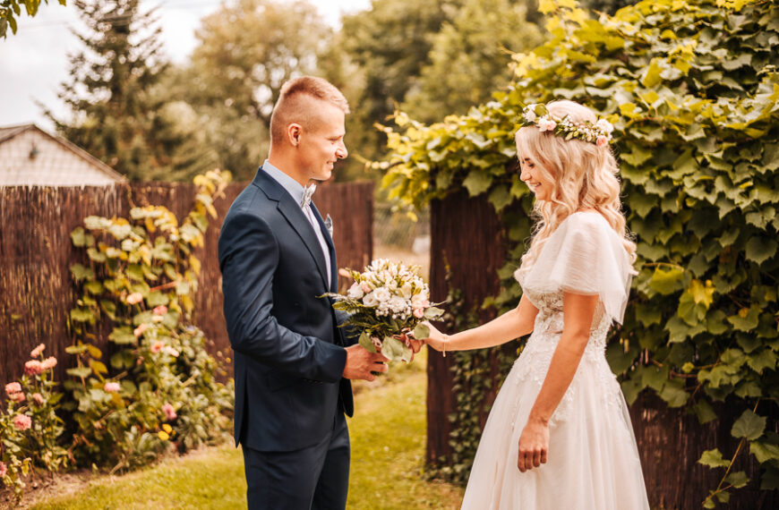 Tego dnia mieliśmy cudowną pogodę, która pozwoliła nam zrobić first look w ogrodzie. Ogromnie się cieszę, kiedy zgadzacie się na taką formę pierwszego zobaczenia swojej drugiej połówki. Jest to często bardzo wzruszający, a zarazem radosny moment i chwila tylko dla was. Wiadomo w dniu ślubu wszystko dzieje się bardzo szybko – szczególnie dla młodych. Dlatego warto na chwilę zwolnić tępo i powiedzieć drugiej połówce kilka słów od serca.