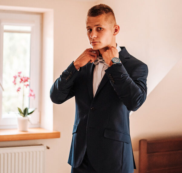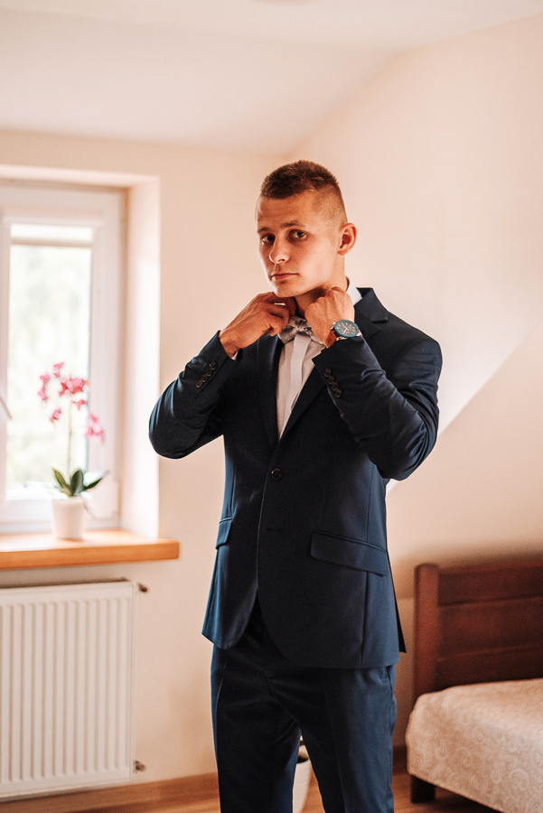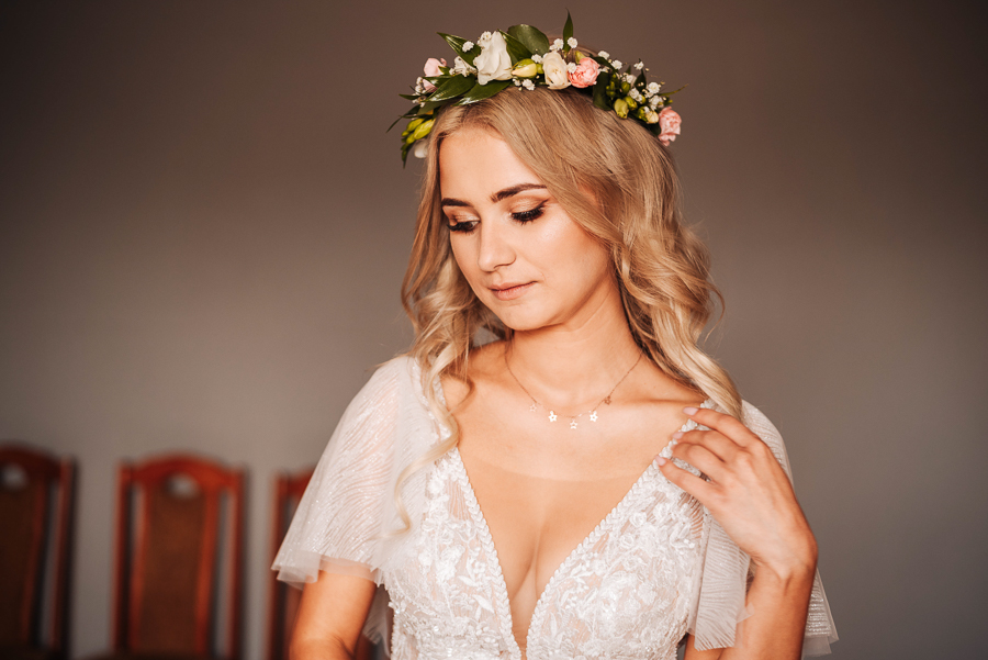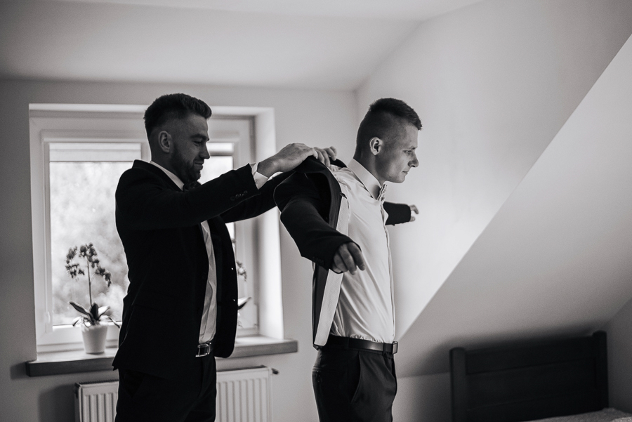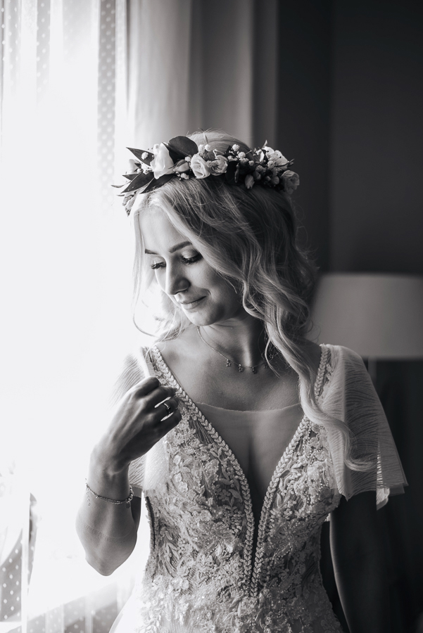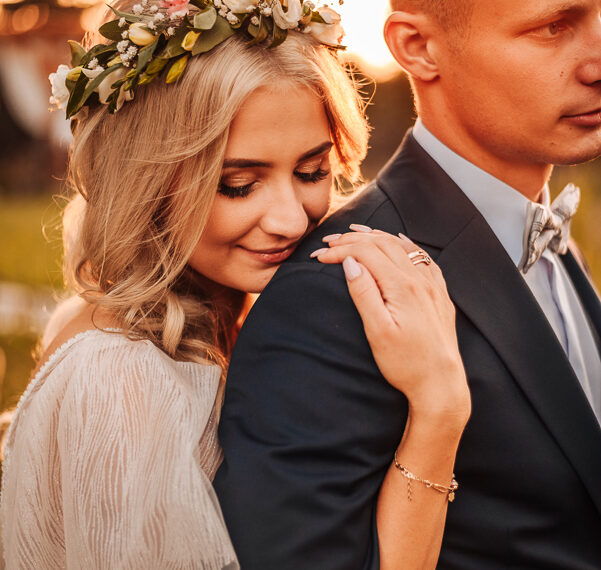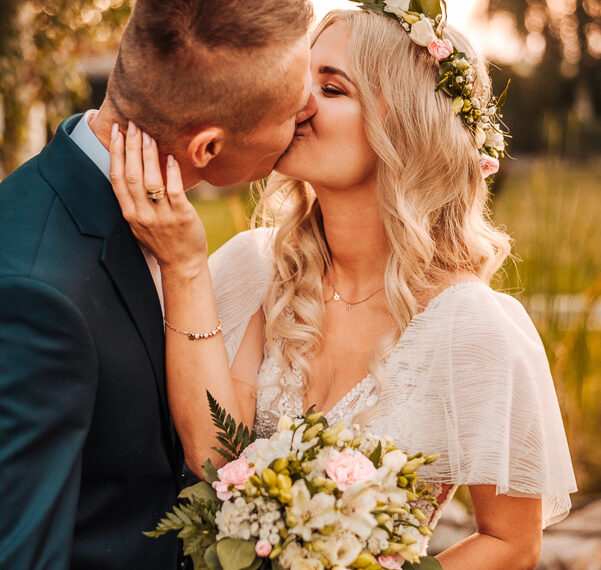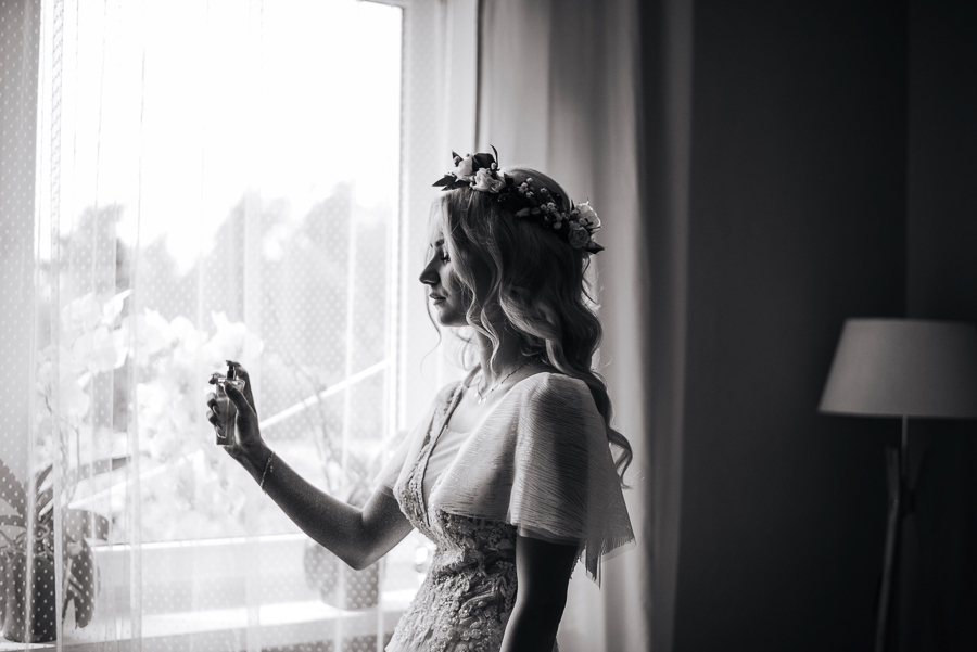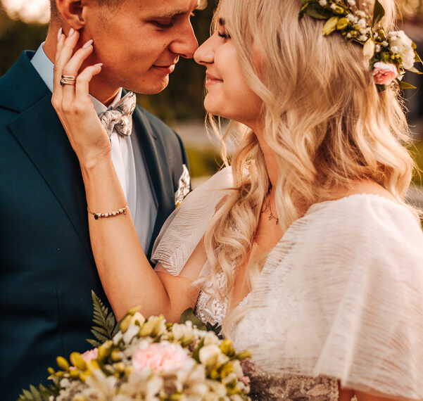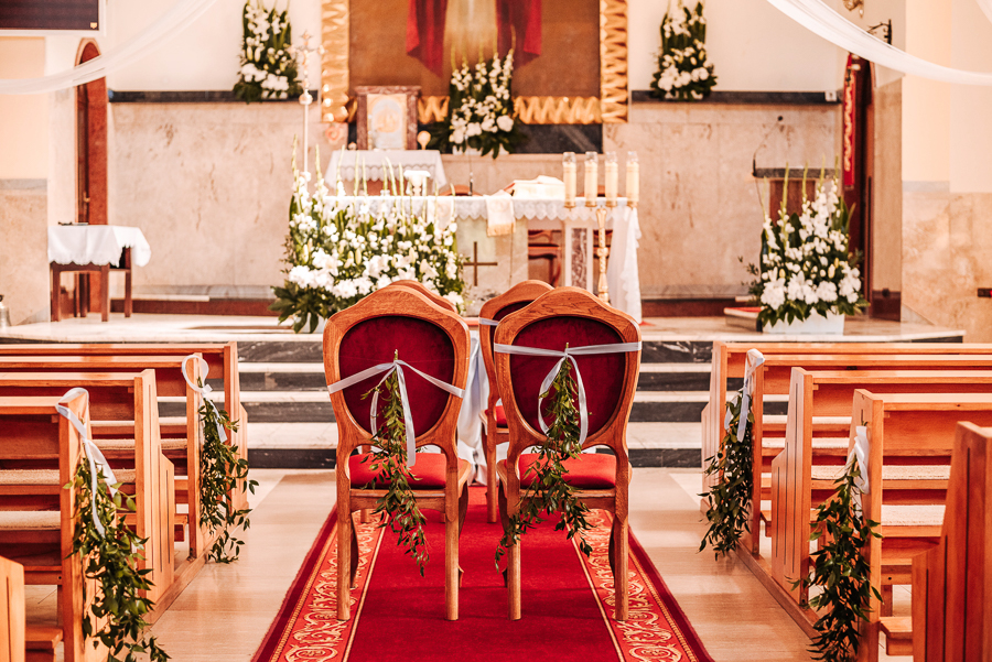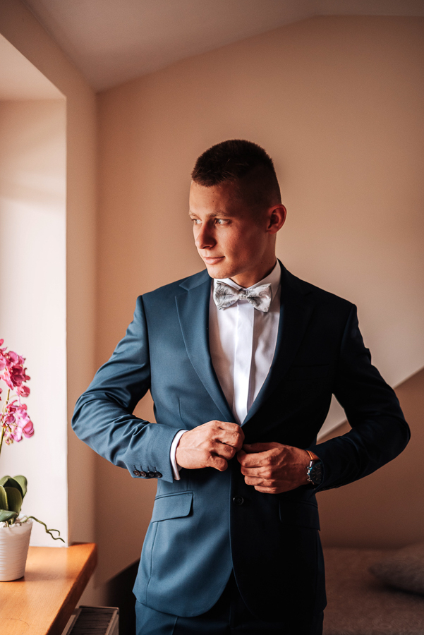 Tego dnia mieliśmy cudowną pogodę, która pozwoliła nam zrobić first look w ogrodzie. Ogromnie się cieszę, kiedy zgadzacie się na taką formę pierwszego zobaczenia swojej drugiej połówki. Jest to często bardzo wzruszający, a zarazem radosny moment i chwila tylko dla was. Wiadomo w dniu ślubu wszystko dzieje się bardzo szybko – szczególnie dla młodych. Dlatego warto na chwilę zwolnić tępo i powiedzieć drugiej połówce kilka słów od serca.