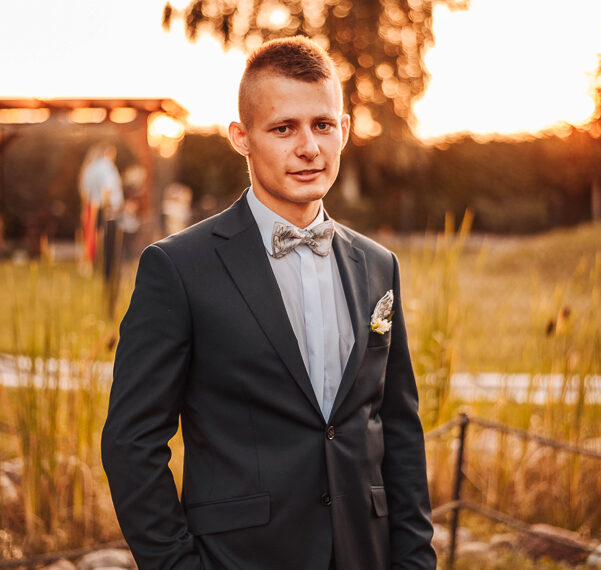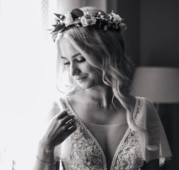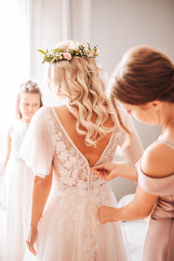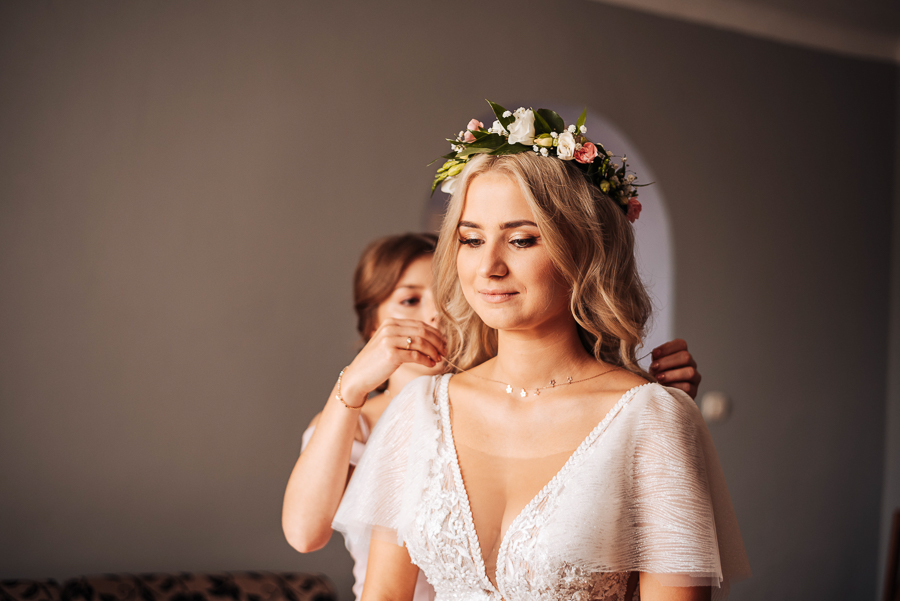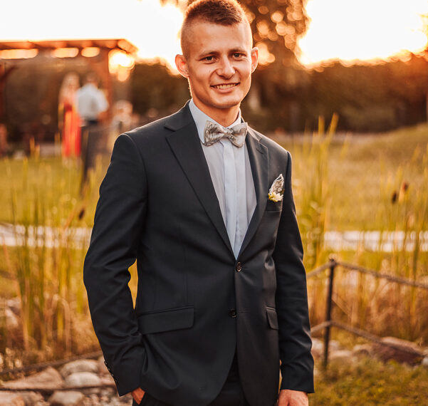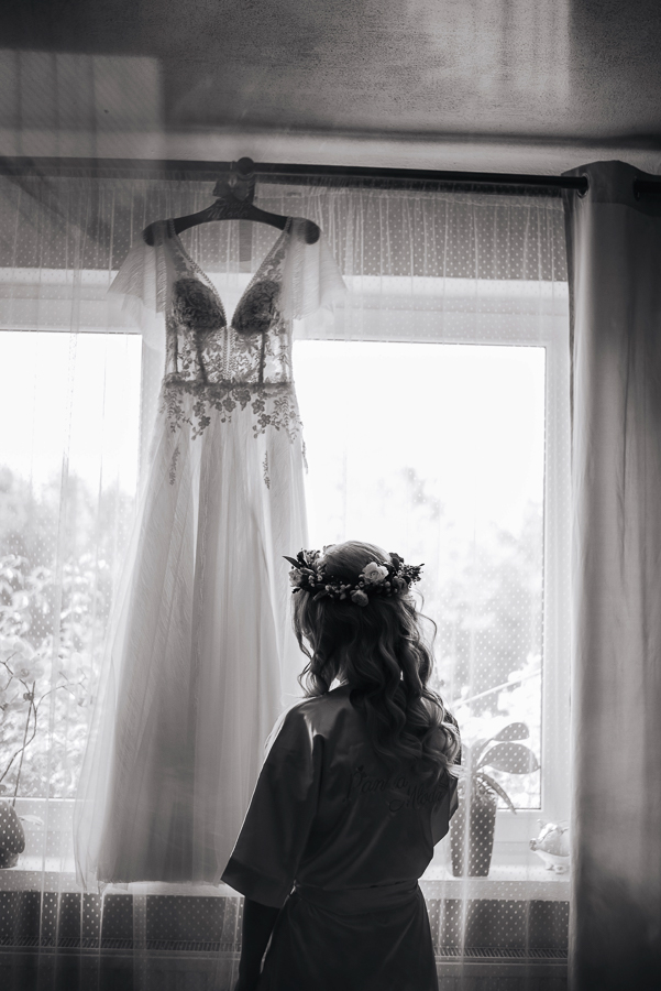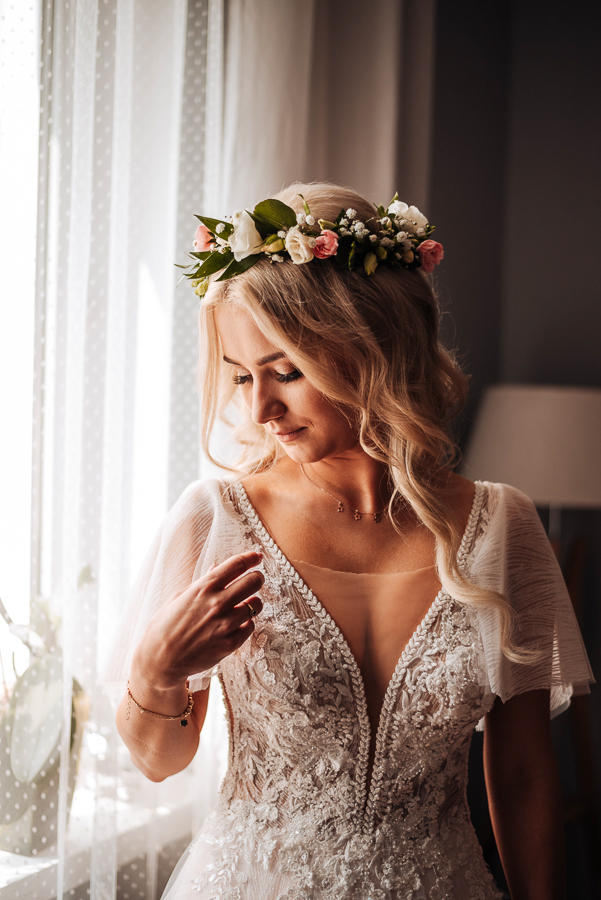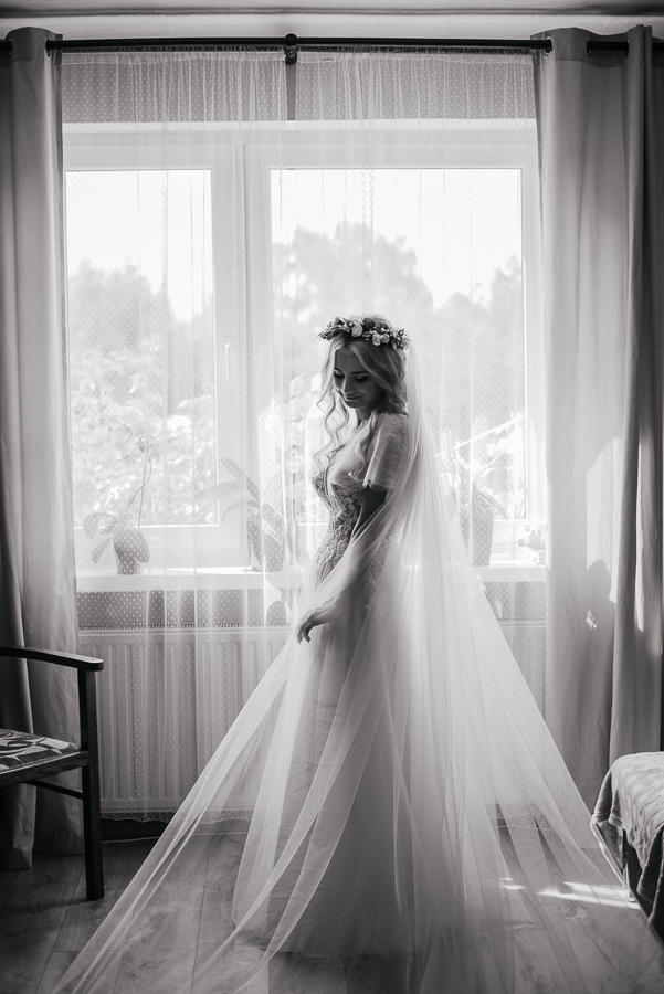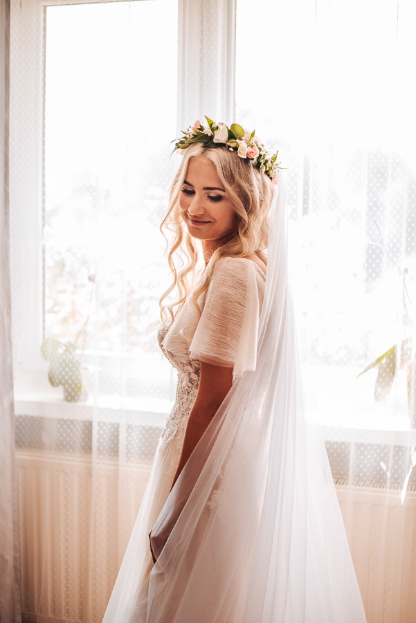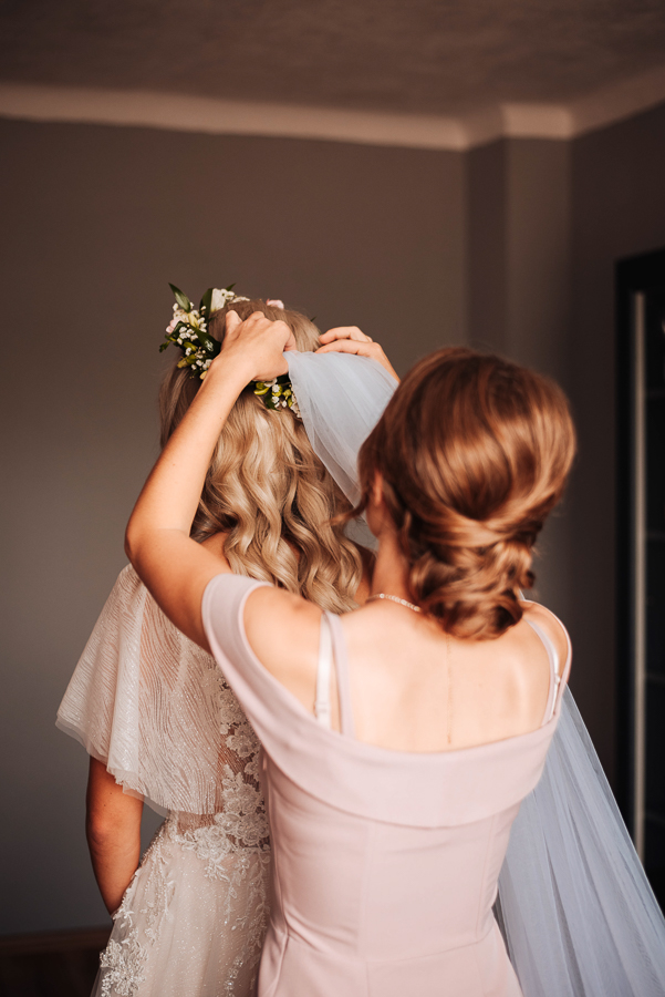 Tego dnia mieliśmy cudowną pogodę, która pozwoliła nam zrobić first look w ogrodzie. Ogromnie się cieszę, kiedy zgadzacie się na taką formę pierwszego zobaczenia swojej drugiej połówki. Jest to często bardzo wzruszający, a zarazem radosny moment i chwila tylko dla was. Wiadomo w dniu ślubu wszystko dzieje się bardzo szybko – szczególnie dla młodych. Dlatego warto na chwilę zwolnić tępo i powiedzieć drugiej połówce kilka słów od serca.